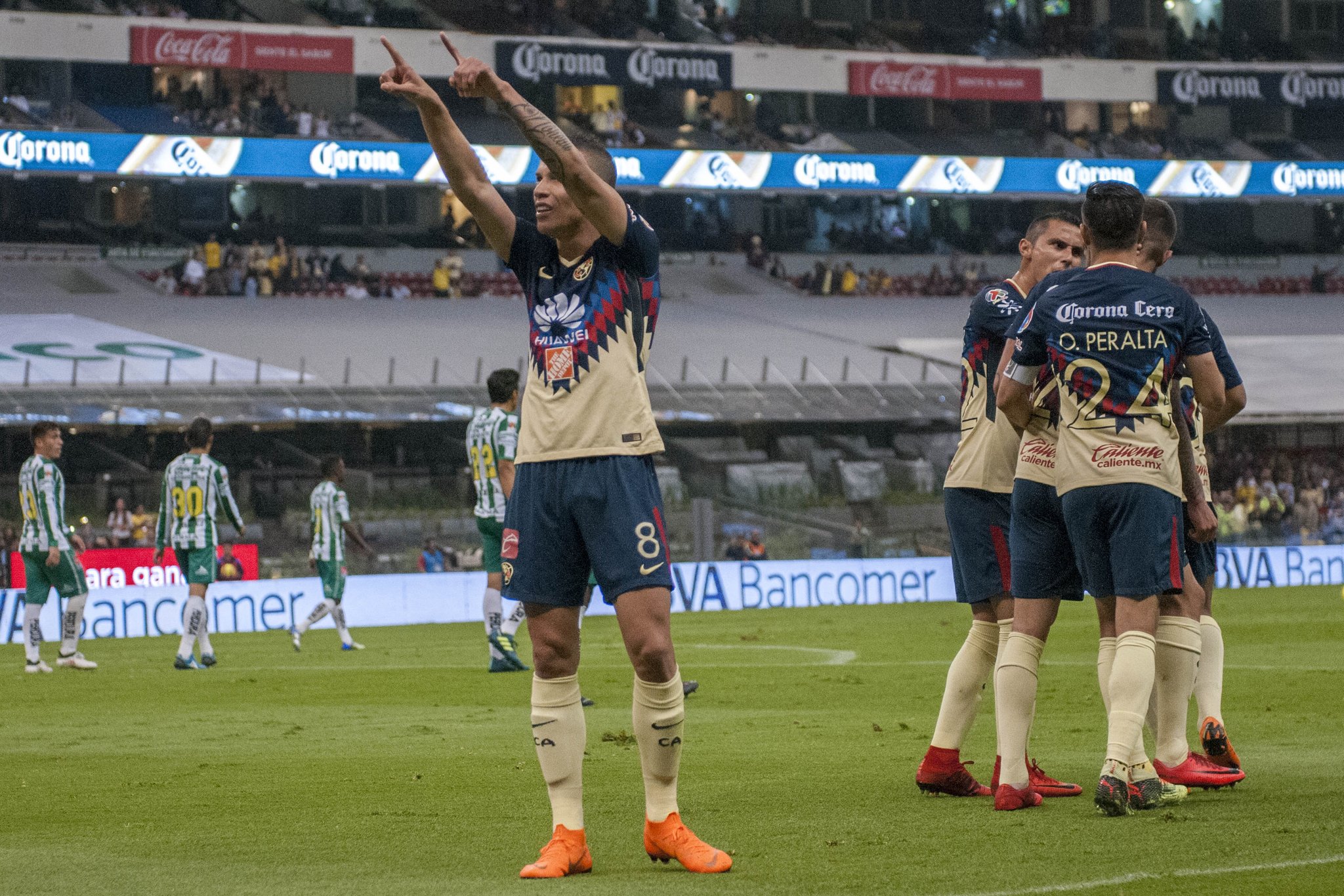 Las Águilas del América reciben en esta Jornada 11 a los Panzas Verdes del León en el Estadio Azteca a las 21:00 horas, en un partido que nos promete ser uno de los mas reñidos de la Jornada, pues ambos equipos vienen en una muy buena forma, pues viene de golear 4-0 al Tauro en la Concachampions, mientras que los Esmeraldas vienen de derrotar en la pasada Jornada a los Pumas de la UNAM, por lo que se diría que están en mejor forma.